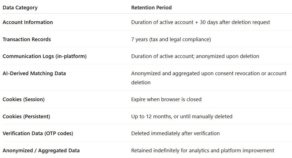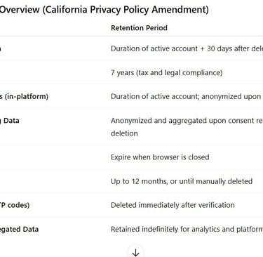 In compliance with CPRA requirements, the following table sets out the retention period for each